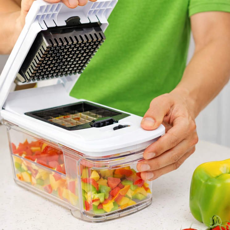 Vegetable preparation is often the slowest part of cooking. A multi-blade vegetable chopper can quickly dice onions, slice cucumbers, chop bell peppers, shred cabbage, and grate carrots. This makes preparing large batches of vegetables much faster.